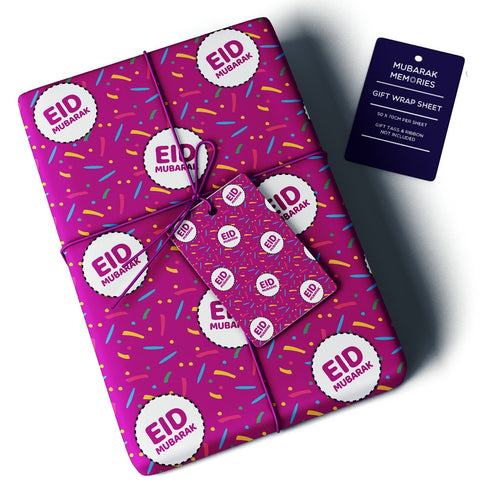 Eid Mubarak Gift Wrap Sheet - Confetti (Pink)