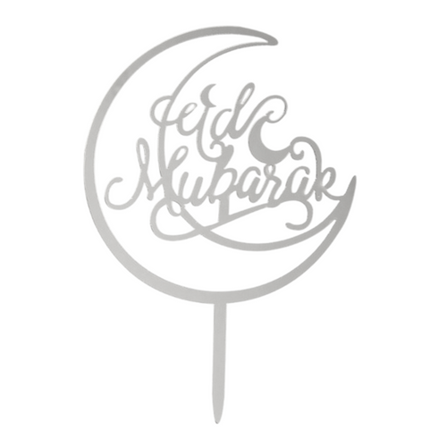 Eid Mubarak Crescent Cut Out Cake Topper - Silver