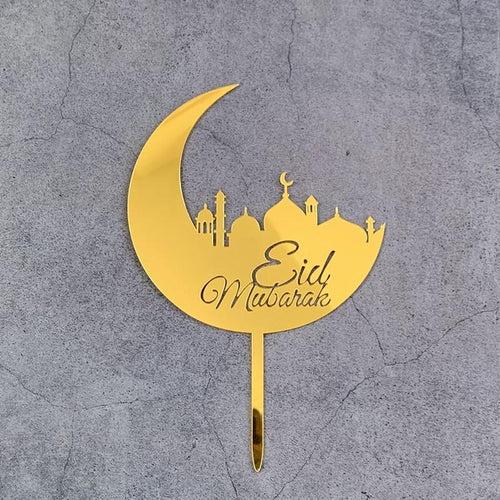 Eid Mubarak Mosque and Moon Crescent Cake Topper - Gold