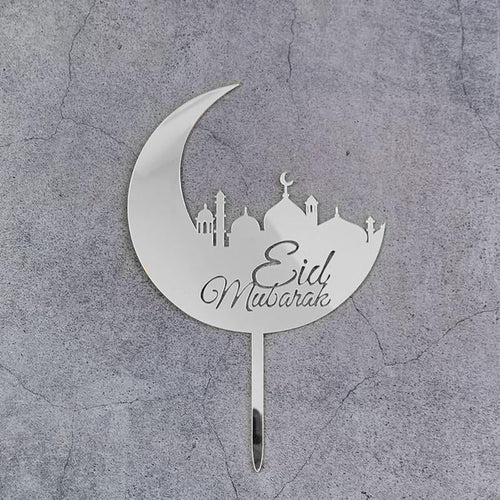 Eid Mubarak Mosque and Moon Crescent Cake Topper - Silver