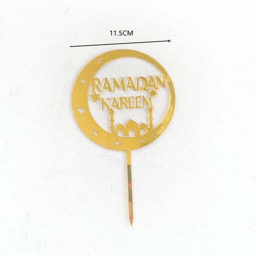 Ramadan Kareem - Mosque Outline Circle Cake Topper - Gold